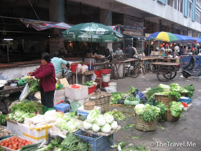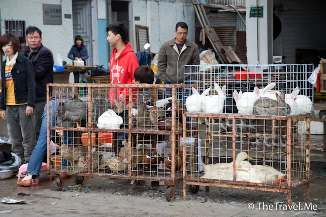 外面其實無甚特別,有很多舖頭都關門了,唯獨街市特別興旺,因為是日為年三十,個個都忙著買菜做團年飯,除了新鮮蔬菜和海產,街市還有生猛活兔供應。
