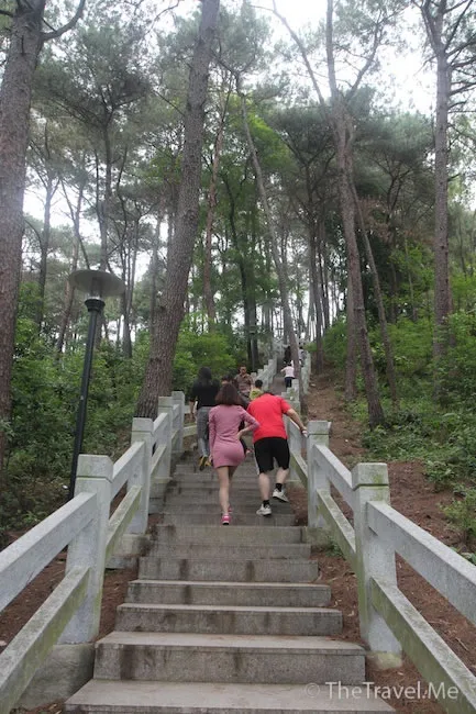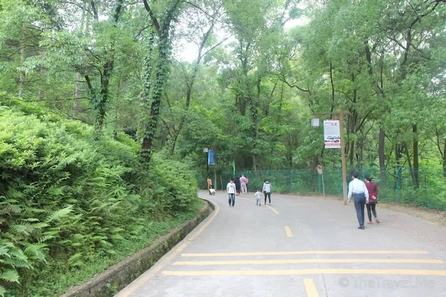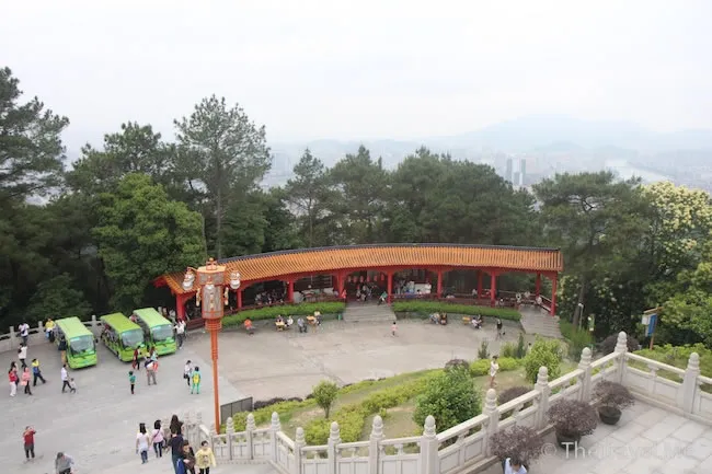 遊客可以在入口乘環保車上山頂去,三十分鐘便能來回一趙,不遠。