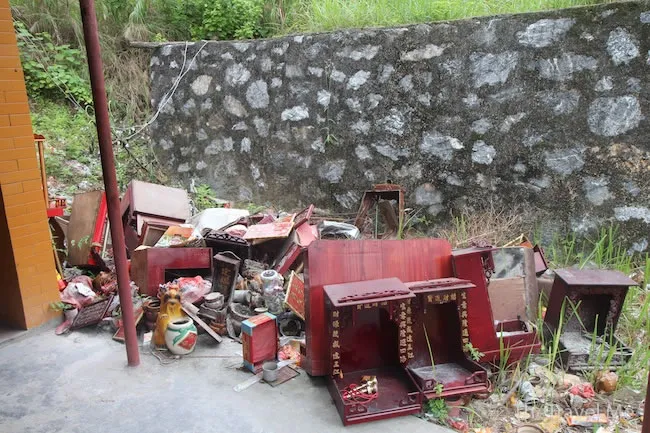 未幾便到了一「山寨廟」,其實所謂廟,不過是一個由人家遺棄的滿天神佛堆成的垃圾崗吧了。