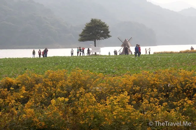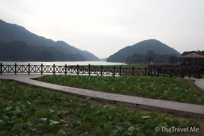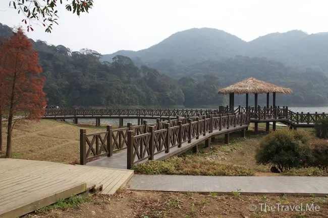 天池的另一邊有色士風和豎琴,當然也是假的,風景不如剛才那邊,兩人都不想走下去了。