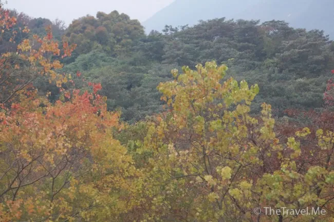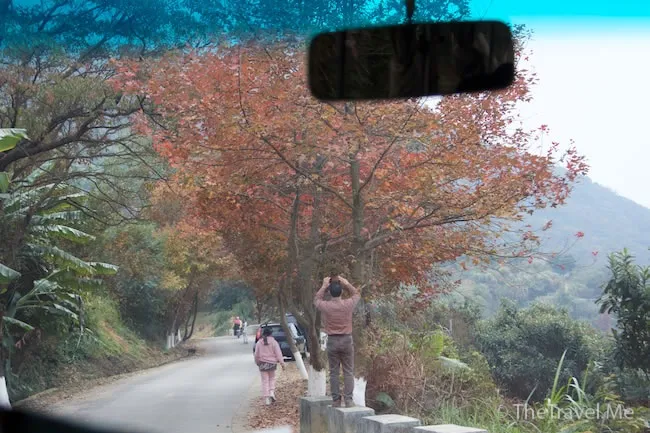 可能是出了些太陽吧,沿路的楓葉顏色更鮮艷,可惜不能停車,看得不真。