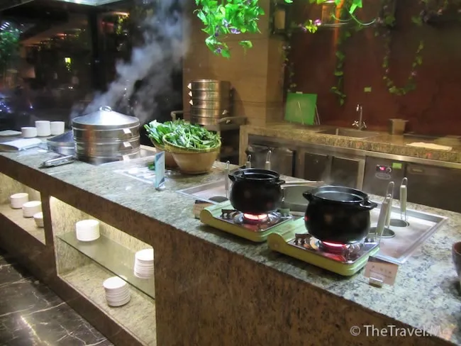 其實晚餐早在六時開始了,粗眉仔一團人七時本才來,只能吃食剩的「殘羹剩飯」,可食物質素比想像中好,當然跟香港五星級酒店的比仍差很遠。