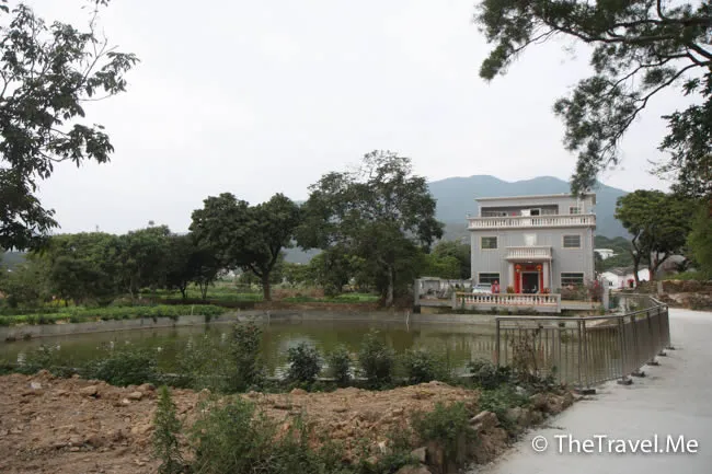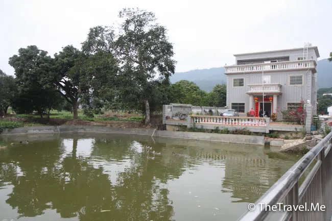 鵝塘旁有幢外表豪華但低俗的別墅,似是此地某某土豪的物業。