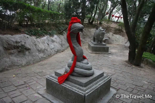孔雀籠附近便有十二生肖像,今年是蛇年,所以蛇像給纏了紅帶。