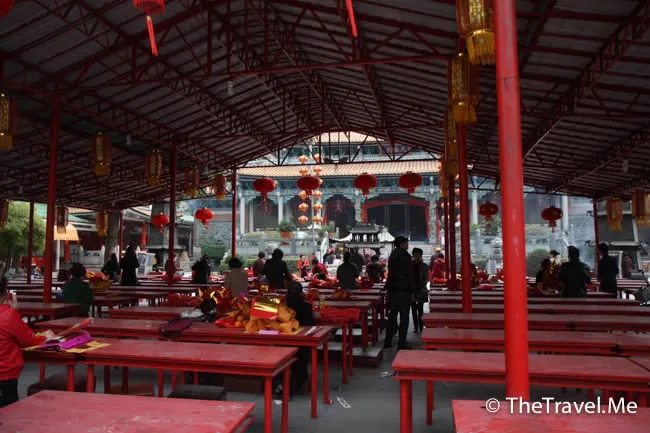 廟前有多張祭案,供信眾設饗祈神。