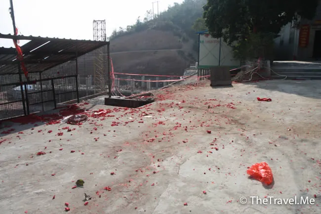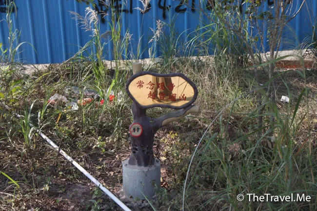 謎底解開,山腳的地盤原來正進行擴建工程,故地上到處都是善信捐來的瓦片,但字體醜陋,誠心有限,唔捐好過。