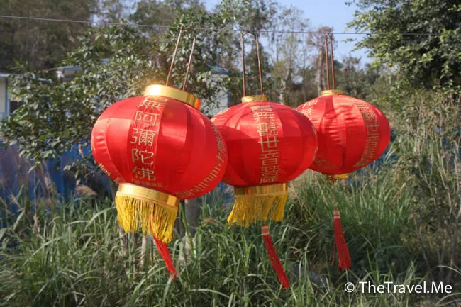空氣中隱隱約約傳來佛歌,原來沿路兩邊都放了擴音器,低俗而滑稽。