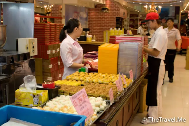 沿博愛路走,忽聞到一陣濃濃的食物香味,原�����是一大盤剛出爐的…月餅?