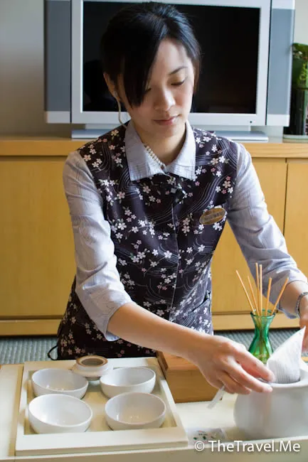 替我們介紹房間設備的是位親切漂亮的小姐,還親自為粗眉仔和公主沏茶,更難得的是,所有雪櫃內的飲品和朱古力都是免費的!