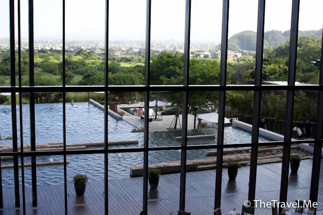酒店的用了大量落地玻璃,以四周的天然山景做牆壁,用日光來照明,既環保又美觀。