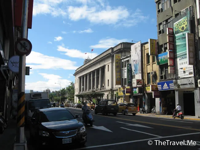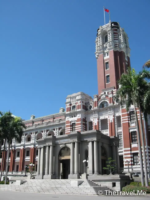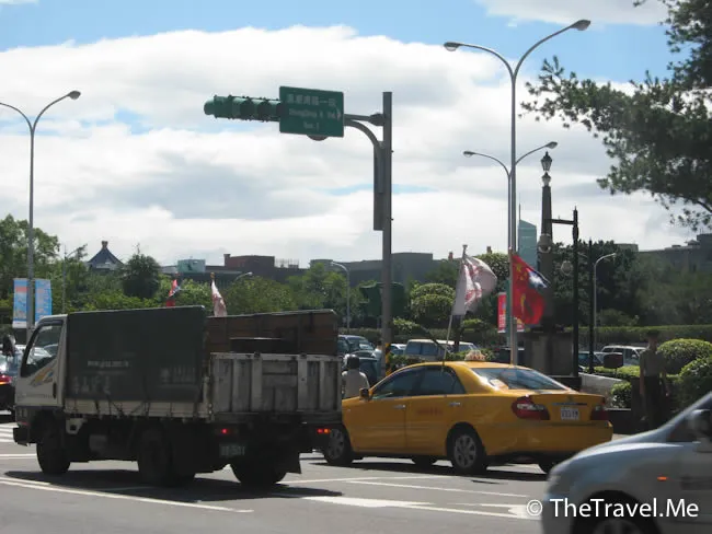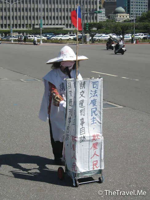 從臺灣銀行的側門一出,就是總統府。剛巧有一插著示威旗的車隊駛過,旗上寫著些諸如「賣國賊」之類的大字,隱約還見到五星旗…