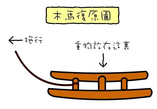 粗眉仔於是特意畫了一個復原圖,其實所謂「木馬」,不過是一具類似雪撬的運輸工具而已。
