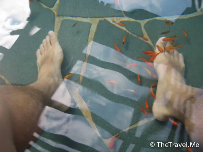 天光一醒來,粗眉仔又去泡溫泉。可能餓了一整夜,溫泉魚仔甫見到粗眉仔雙腳,就立即蜂湧而來,嚇到粗眉仔以為換了一批食人魚。