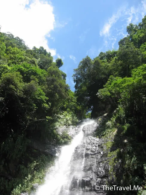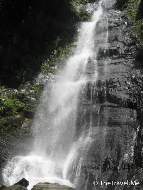 幾經艱苦(粗眉仔的底褲「經已」完全濕透!)終於到達第一層瀑布,果然氣勢非凡,高到連相機都拍唔哂,兩個人亦頓時舒服哂,連公主都話值得,認真唔話得。