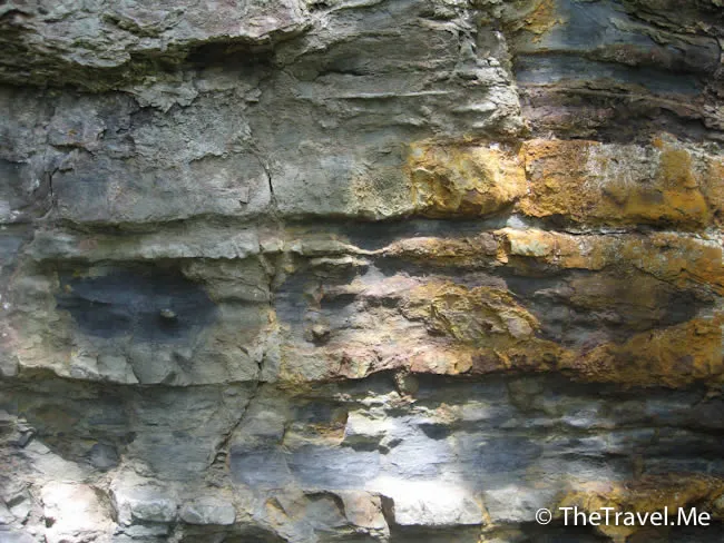 半路上見到像千層糕般的岩石,証明這山谷在古時候是海厎來的。(沉積岩的特徵)