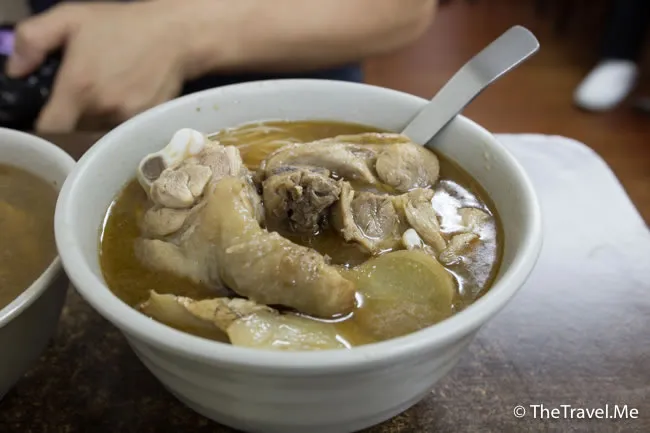 店家非常「鬆手」,雞肉份量非常多,而且更是大大隻雞髀,雞湯因為係用藥材煲的關係,所以有少少苦味,但卻消減了油膩的感覺,如果嫌太淡,可以加辣椒醬來提鮮。