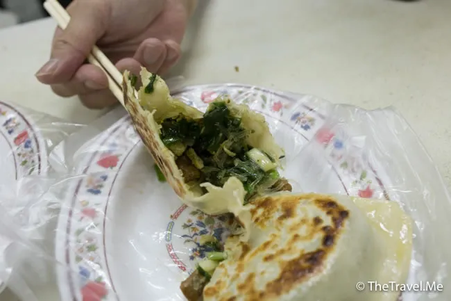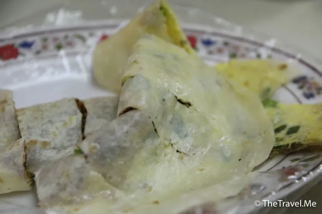 肉鬆蛋餅雖然是即叫即煎,但因為燒餅是舊貨,所以死死實實,不好吃也不算太難吃。
