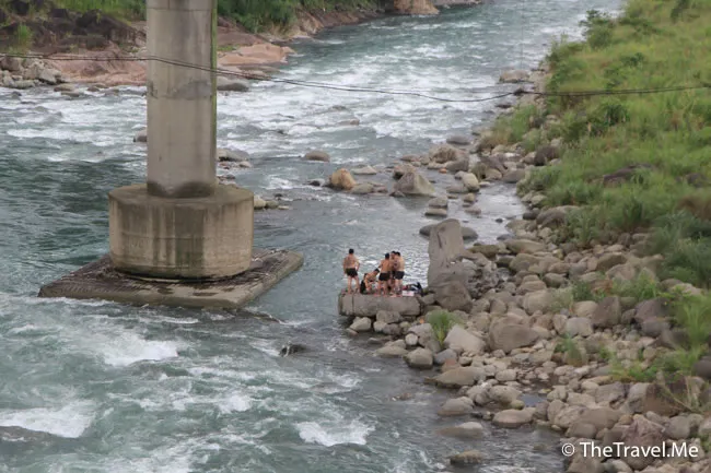 內灣吊橋是以前穿越油羅溪前往南坪的交通要道,不但擁有雙橋墩的特殊構造,走在吊橋上還可以欣賞整個油羅溪的�流景致,可能天氣熱,有不少人在河中游水。