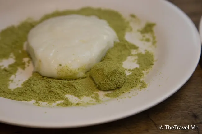 特別一提,綠色的叫做擂茶,是客家傳統的茶,有點似日本抹茶,但味道稍為複雜少少。