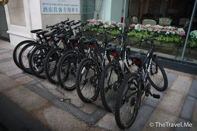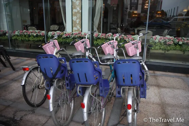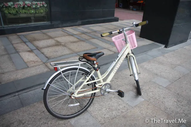 酒店有單車免費出借,粗眉仔為方便放背囊,跟豬豬一樣挑了個前置菜籃的,酒店職員偷笑,似在嘲笑粗眉仔女人型。
