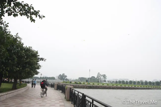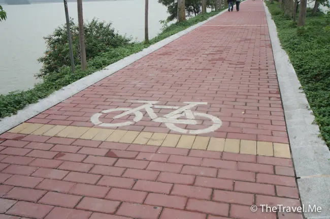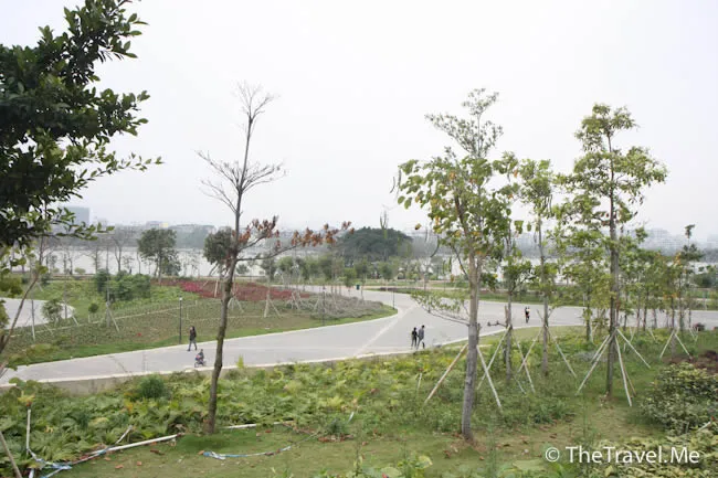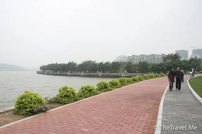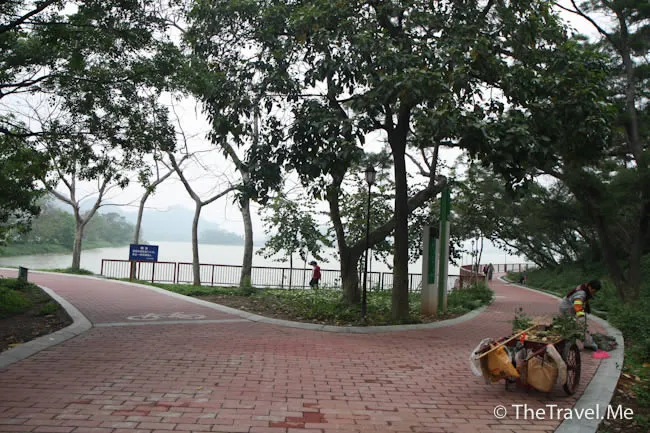 綠道的一邊是星湖,另一邊是公園,公園設施頗佳,有亭子、小橋、花圃、水池…但就是沒有半個廁所。