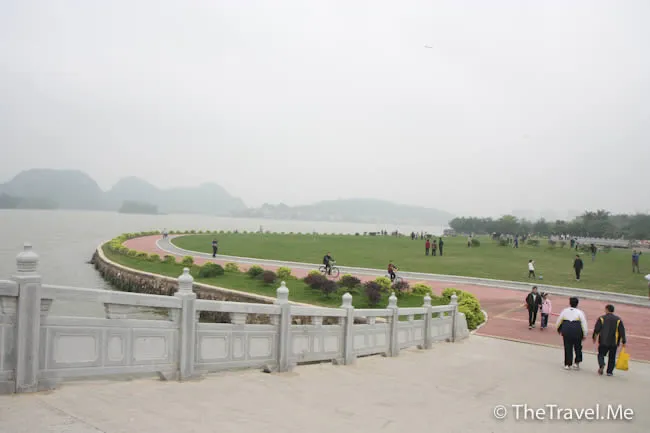 未幾兩人便駛到堤道的盡頭,綠道雖繼續綿延,但卻被一道閘門攔斷了。粗眉仔再看清楚,原來這裏是七星岩南門,要進去得付六十元入場費。