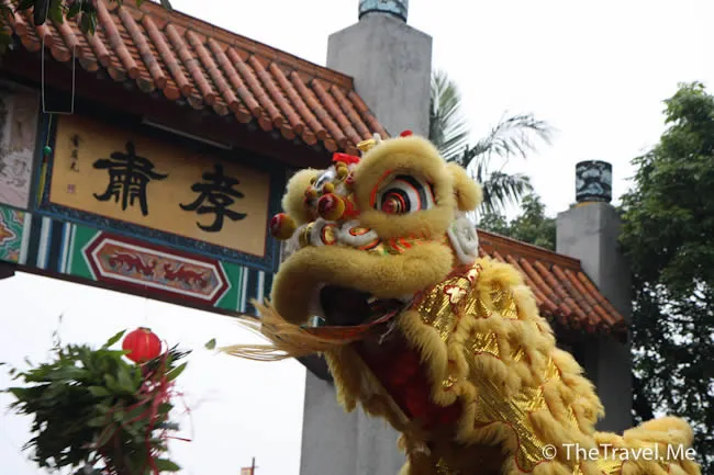 舞獅表演跟平日在香港看見的分別不大,不過勝在有古廟做背景,所以仍有丁點睇頭。
