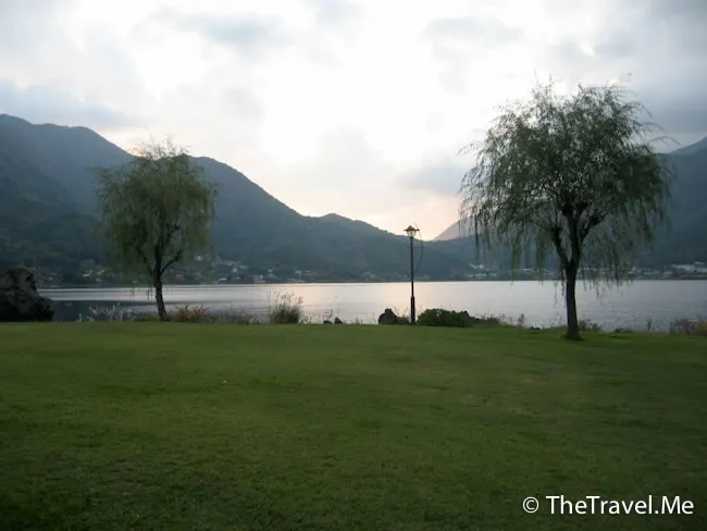 赫然見一間有微弱燈光的店舖,立即衝入去每人各用一百日圓員了一個麵包,不用餓死異國街頭。有了氣力,便到酒店附近的湖畔風景區遊覽。