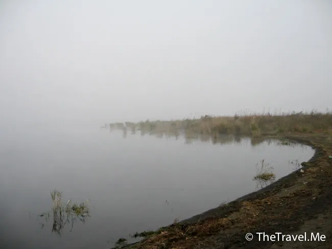 第二朝,粗眉仔清晨到湖畔散步。風冷冷,霧濃濃,不見半點人影…