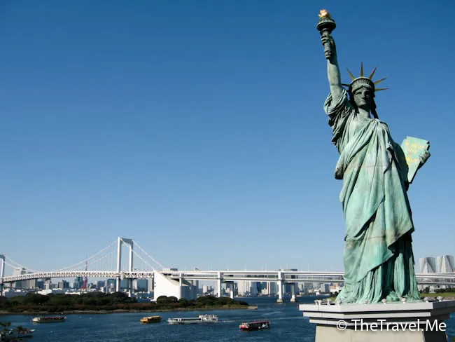 御台場是一個人工島,島如其名,平平的一整片台地,上面有商場、博物館、摩天輪…