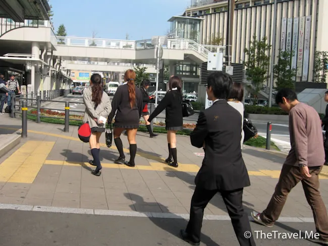 從北門出就遇上幾個女學生,女學生後則有幾個「眼甘甘」的「裙腳男」。真不明白為何女學生的校服裙會這麼短,裙腳起碼去到膝蓋對上兩寸,難道校規沒有規定?還是…這是校規規定的?