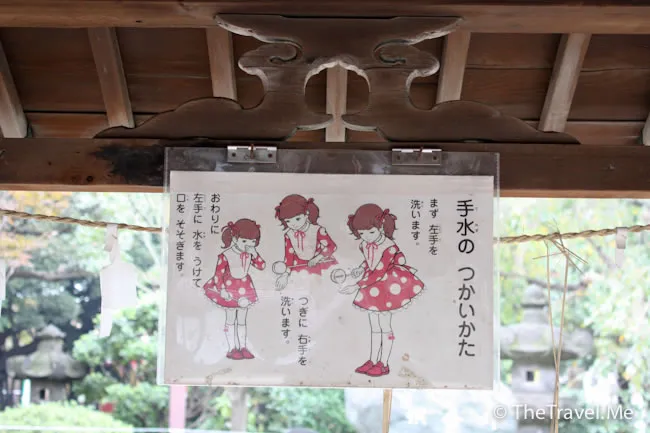 神社內有「美少女」教授洗手步驟,非常可愛。