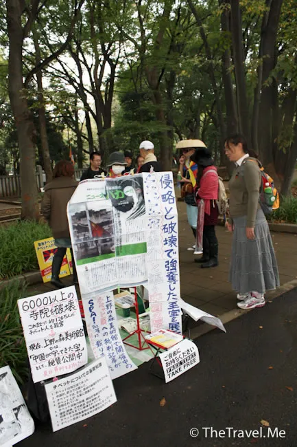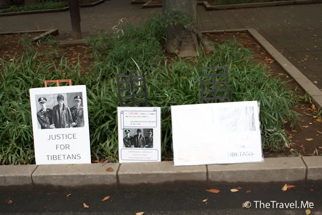 公園裏博物館有個關於西藏藝術品的展覽,博物館正門卻聚集了七八個抗議中共的示威者。身為香港中國人的粗眉仔,看見後自然別是一般滋味在心頭。