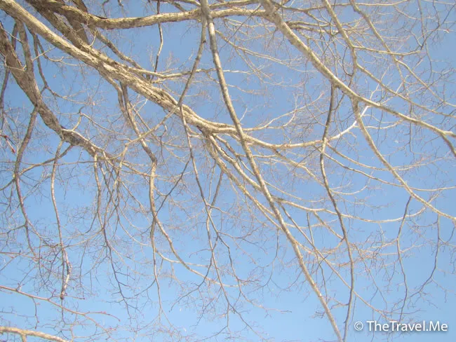 樹幹的投影曲折離奇,和白雪對比分明,整片雪地都成了一幅抽象畫。