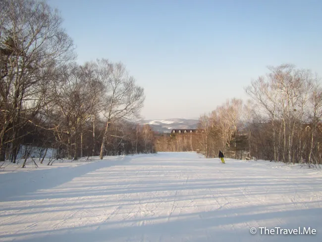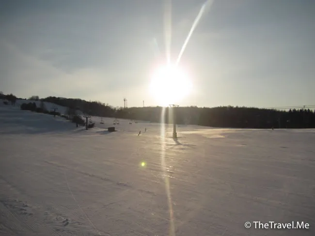冬天日短夜長,下午四時多,安比高原滑雪場已是夕陽西下的光景。
