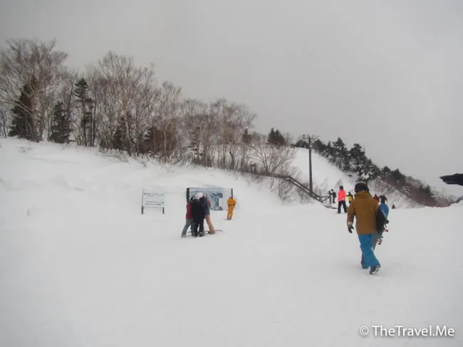 走上一小段山坡,便是昨天去過的綠色滑道起點,雖然說是一小段,但拿着滑雪裝備行上去,少些體力也不行。