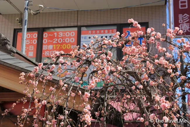 車站旁邊有一間小神社,正門兩旁各植一株茂盛的梅樹,為這條平凡的小街帶來一點生氣。