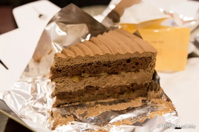 店內規定,除了蛋糕,一人要點一杯飲品,飲品價錢和蛋糕差不多,不大化算,加上要趕搭飛機,兩人沒有太多時間,便決定外賣兩件蛋糕返酒店吃。