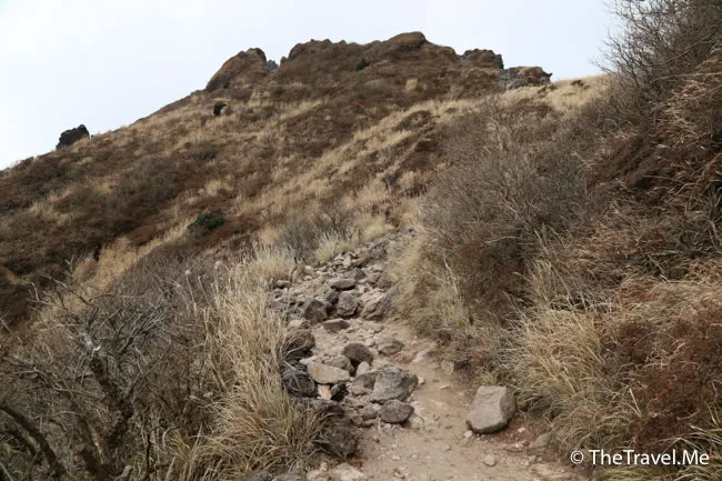 由布岳的前半段頗為平緩,但後一段卻甚陡峭,粗眉仔和豬豬越行越慢。