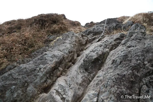 睇見這條鐵鍊,就知道上西峰的路極陡峭,粗眉仔有自知之明,決定登上比較容易的東峰。