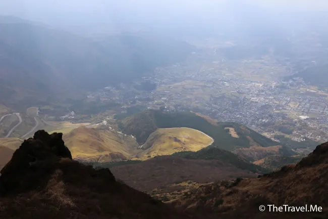 另一邊則可以看見鶴見岳和別府,縱使天陰,今日的能見度仍算不錯。