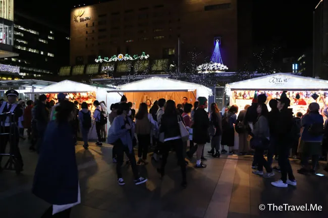 出乎意料,除了燈飾之外,廣場正門還有聖誕市集,販賣各式聖誕飾物和應節食品,十分有趣。