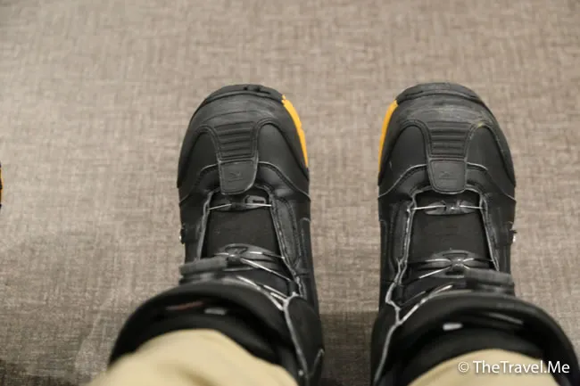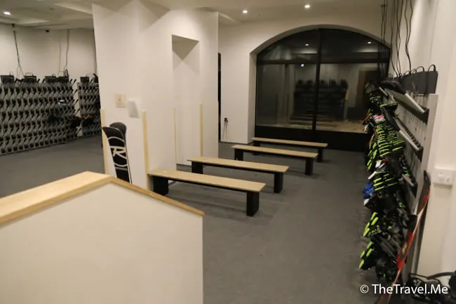 放好行李後,兩人便到一樓租滑雪器材,雖然輪候的人不少,但職員仍然細心幫住客量度尺碼,抵讚!