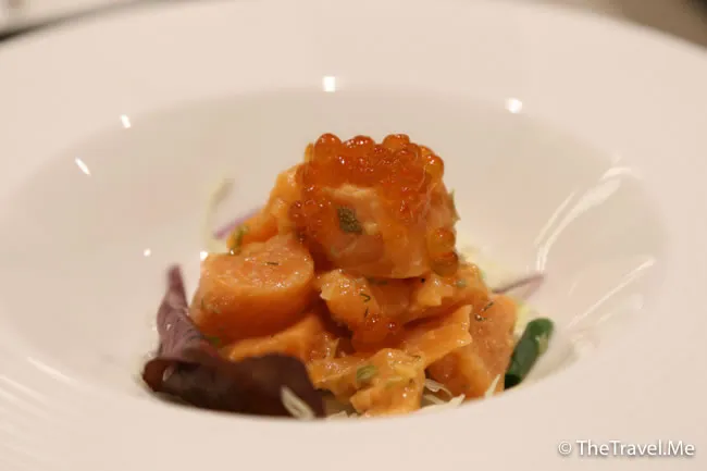 全場最美味就是這個頭盤,粗眉仔稱之為「三文魚親子沙律」。