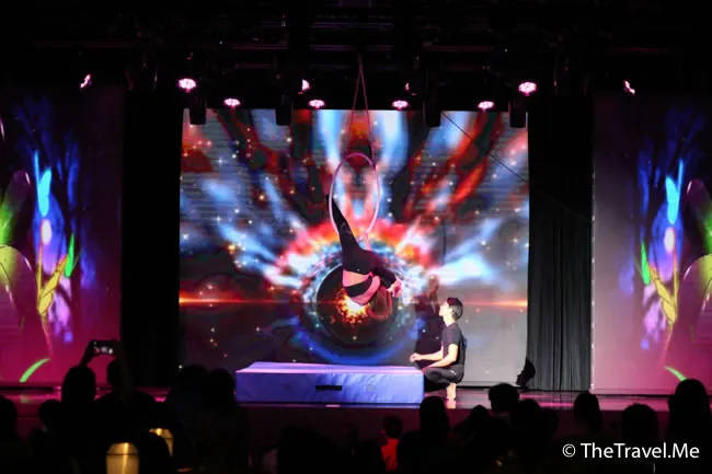 三樓還有一個大劇場,幾乎整日都有活動,但以晚飯後最精彩,因為個個吃完飯沒事做,劇場內座無虛席。