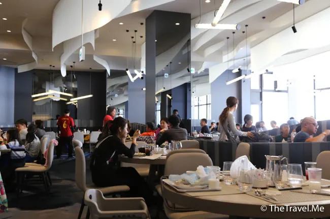 餐廳內早已人山人海,如戰場–般,個個都趕著上下午的課,吃得匆匆忙忙。
