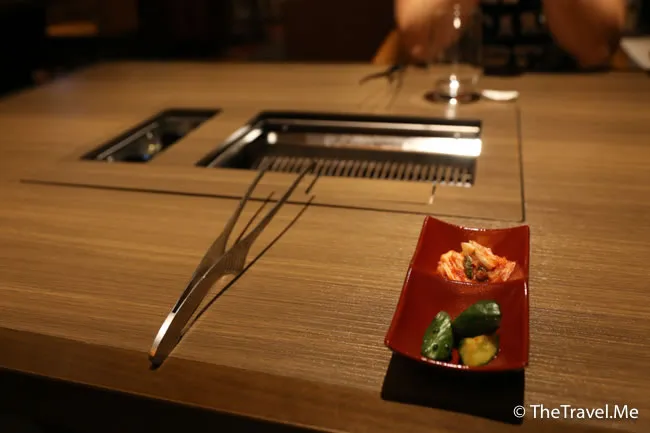 由於是燒烤餐廳,所以今晚是吃燒肉,餐前小點有碟泡菜,粗眉仔起初以為是韓式燒烤。