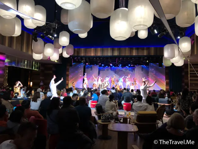 食飽飽之後,兩人便去樓上的劇場看看有什麼節目,今晚有熱鬧的歌舞表演,大家都睇得好開心。