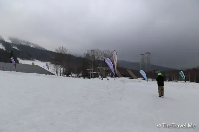 由於時間尚早,滑雪場內水靜河飛,幾乎冇人。