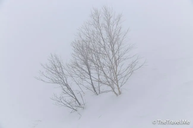 今日的天氣同昨日差不多,也是陰天有雪,粗眉仔慶幸自己之前趁好天時走遍了整個山頭。